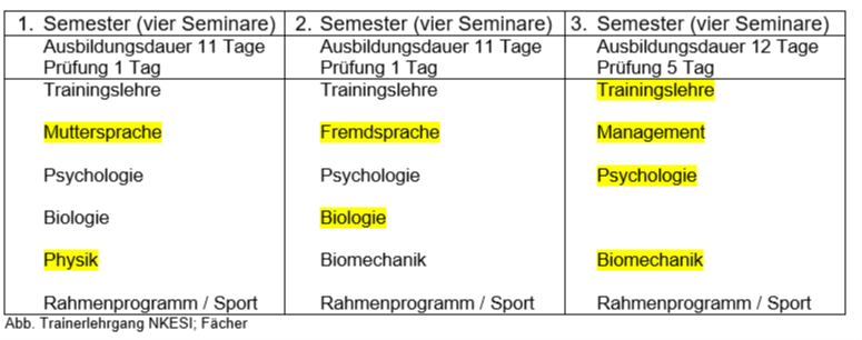 Die Ausbildung zum NKES-I-Trainer dauerte berufsbegleitend drei Semester mit je vier Seminaren und insgesamt 36 Ausbildungstagen (Teil 1 der Ausbildung).