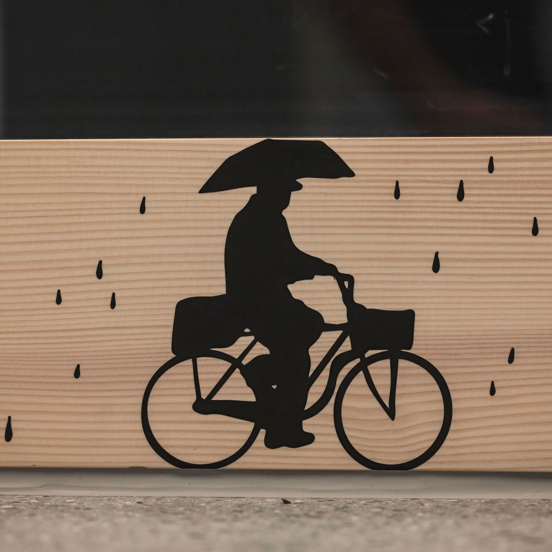 Schmissig fliegt ein*e Trickskifahrer*in über das Treppengeländer Richtung Sprinttunnel. Was einem Cartoon entsprungen erscheint, ist zu einem überlebensgrossen Sticker geworden.
