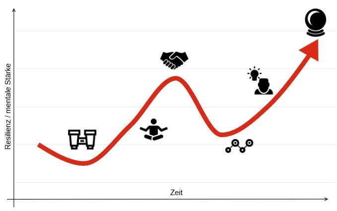 Wie konkret gelangen wir gestärkt und leistungsfähig aus schwierigen Situationen? In sechs Phasen wird ein mental starker und resilienter Umgang bei Veränderungen beschrieben.