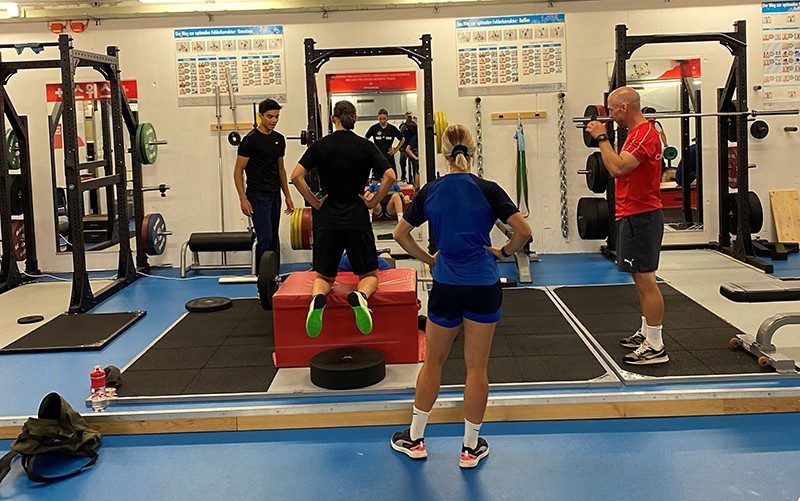 Zehn Tage nach dem Start der Spitzensport-RS 2/2022 stand Oliver Riedwyl mit den YB-Spitzensport-Rekruten Lewin Blum und Alexandre Jankewitz noch in der Halle End der Welt und liess sie bei einer Ballübung über seine fussballerischen Qualitäten staunen. Am 12./13. November fand die letzte Super-League-Runde statt. «Und einen Tag später sind wir schon ins WM-Vorbereitungs-Lager nach Doha abgereist», sagt Oliver Riedwyl nach einer Woche Aufenthalt im Wüstenstaat. «Diese WM ist speziell», so Riedwyl. «Einerseits findet sie im europäischen Winter statt, andererseits sind die klimatischen Bedingungen in Katar sommerlich heiss, ja extrem.» Das erfordert Anpassungen im täglichen Training. «Mit Markus Tschopp haben wir einen hervorragenden Leistungsdiagnostiker, mit dem ich seit Jahren gut zusammenarbeite», sagt Riedwyl. Der Leistungsdiagnostiker und Sportwissenschaftler der Eidgenössischen Hochschule für Sport Magglingen EHSM ist – wie auch der Magglinger Physiotherapiechef Stephan Meyer – schon länger mit der Nationalmannschaft unterwegs. Er kennt nicht nur die Werte der Spieler des WM-Kaders 2022, sondern auch viele von Fussballerinnen und Fussballern, die in Magglingen bei seinem Team «Spielsportarten» die Leistungstests absolvieren.