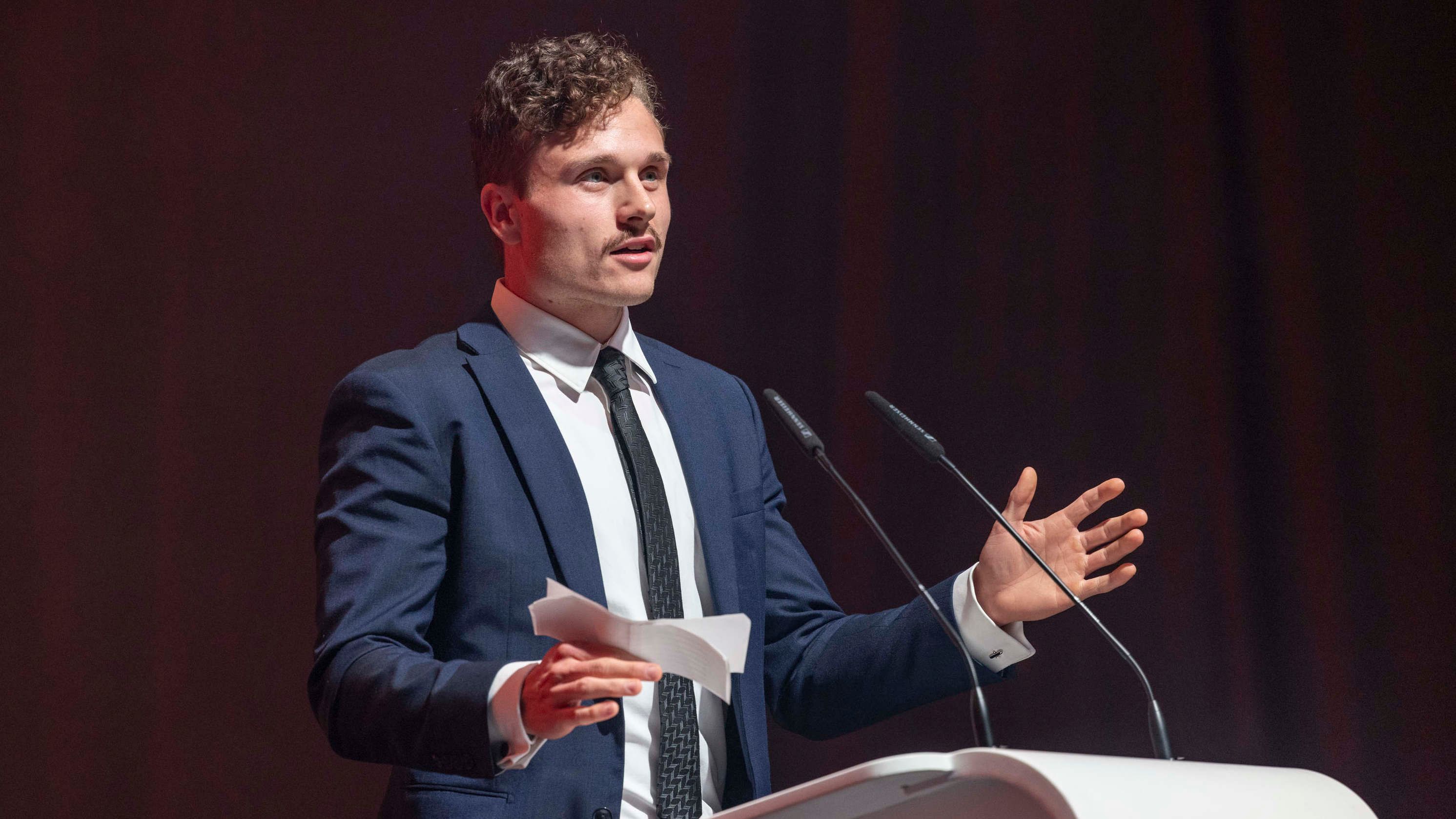 Die Bachelorabgängerinnen und -abgänger geben mit einem Gedicht, vorgetragen von Niklas Winkler, und einer Videosequenz Einblick in das Magglinger Studierendenleben. Sie begannen ihr Studium mitten in der Corona-Pandemie: Unterricht per Video statt vor Ort. Die gezeigten gemeinsamen Studienerlebnisse machen deutlich, dass der anfänglich schwierige Start schnell kompensiert war.