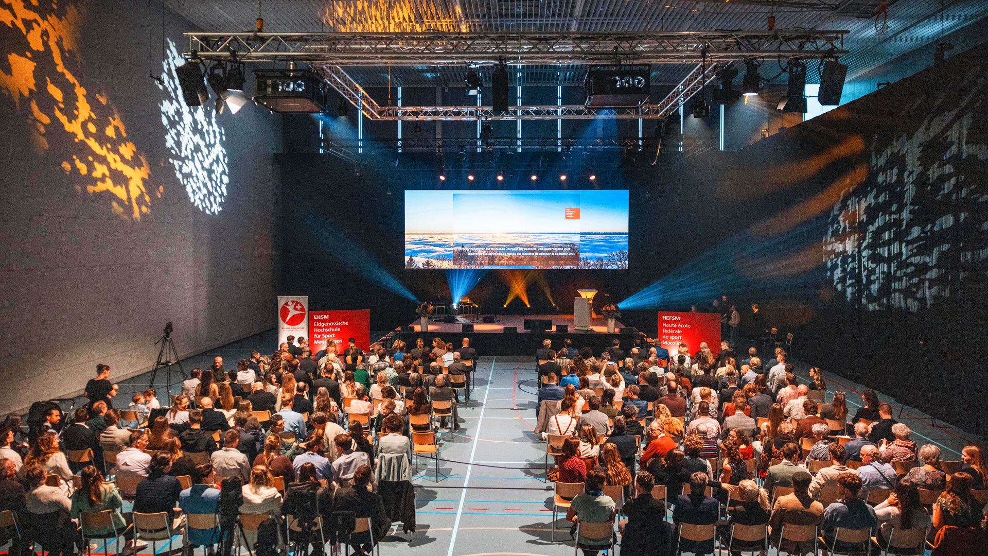 Les chansons du duo seelandais Matchenko et les différentes interventions des étudiants et étudiantes ont apporté de la légèreté à la soirée. C’est ainsi que Leonie Christen a lu un texte au nom de la promotion 2021-2024 du bachelor tandis qu’Alessia Strebel et Nadine Rappo ont projeté une vidéo donnant un aperçu de leur parcours à Macolin. Lors de cette édition encore, les Alumni EHSM-HEFSM ont récompensé un étudiant ou une étudiante pour son engagement social particulier au cours de ses études. Cette année, leur choix s’est porté sur Cinthya Hayoz. Nadja Schneider, Vito Gonzalez, John Felber et Noé Kaech ont quant à eux brillé dans trois vidéos présentant divers défis. Les étudiants et étudiantes étaient donc au centre de l’attention, comme le veut la tradition lors d’une cérémonie comme celle-ci.