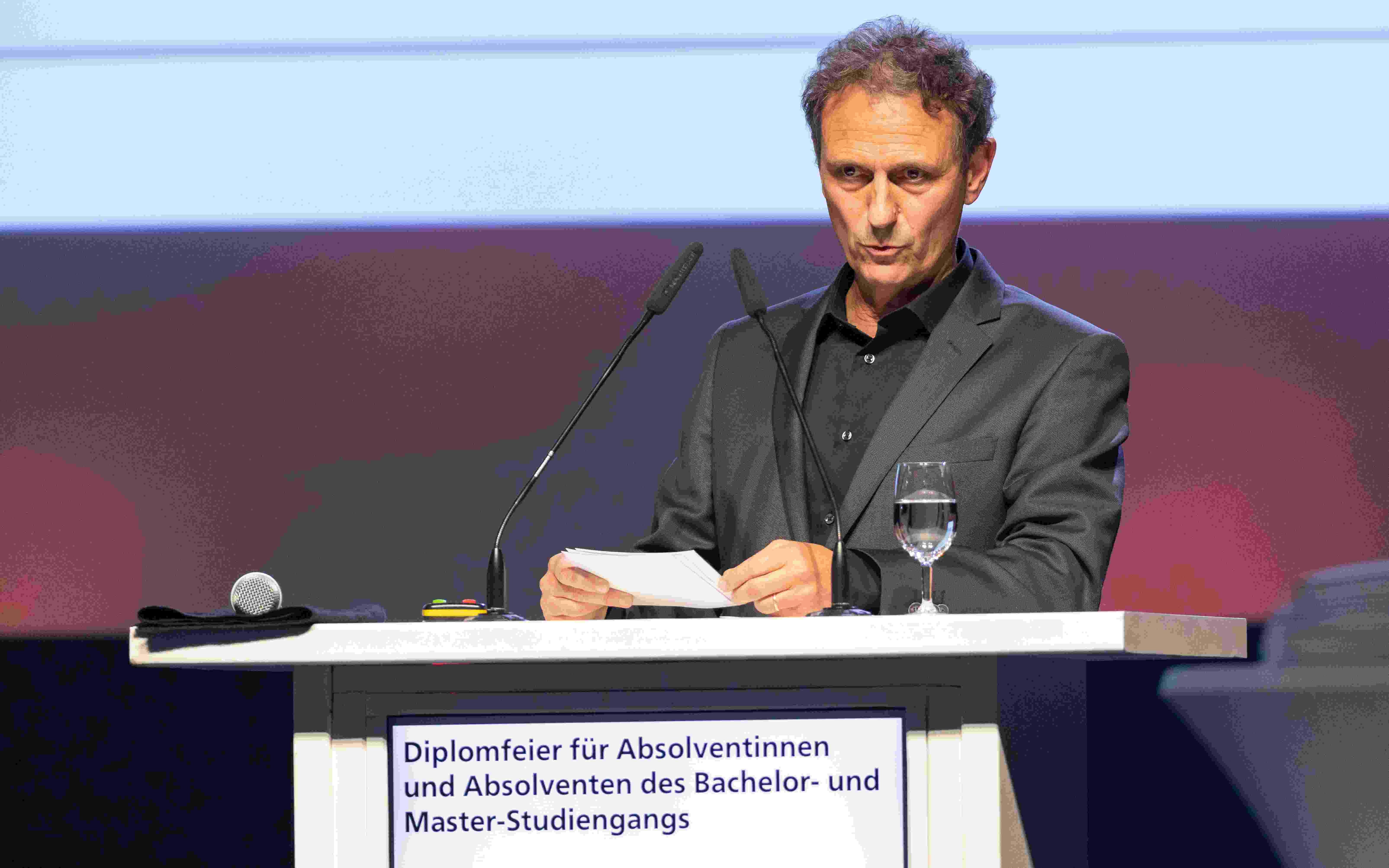 Dans le contexte des 75 ans de l'encouragement du sport à Macolin, le co-recteur de la haute école, Walter Mensigen, a retracé l'histoire mouvementée et captivante du site, autrefois Ecole fédérale de gymnastique et de sport, devenu au fil des ans Office fédéral du sport OFSPO. Pour le co-recteur, les années passées à Macolin marqueront profondément les étudiants et étudiantes qui recevaient ce soir-là leur diplôme. A ses yeux, Macolin est bien plus qu'un lieu d'études, c'est un véritable choix de vie : ce que ces étudiants et étudiantes ont vécu et appris ici les accompagnera tout au long de leur parcours.