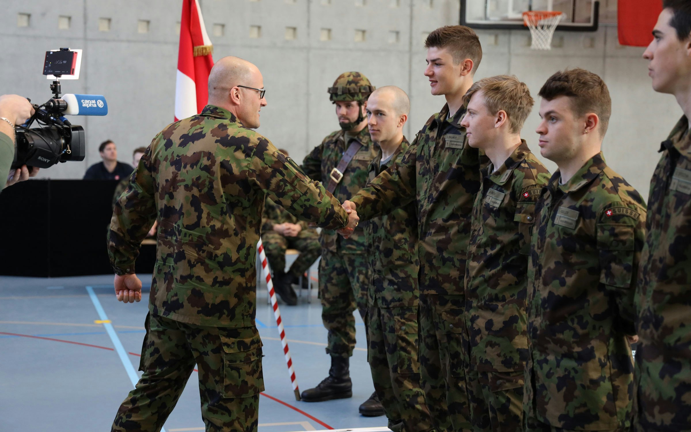 Certains soldats-sport présents ont obtenu d’excellents résultats sportifs au cours des derniers mois et ainsi été honorés. C’est le cas notamment de la rameuse Jeannine Gmelin ainsi que des deux tireurs Nina Christen et Jan Lochbihler, tous trois militaires contractuels sportifs d’élite.