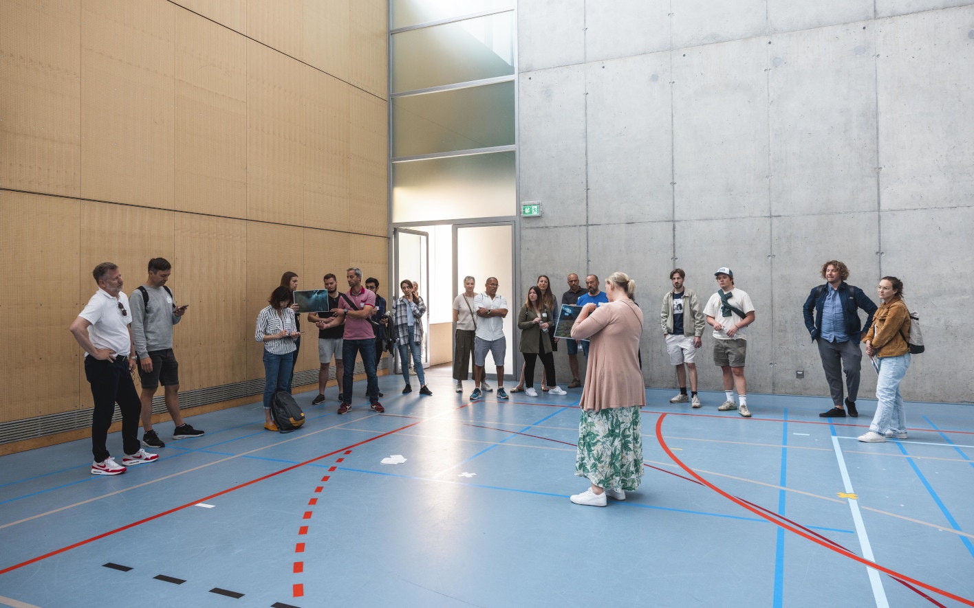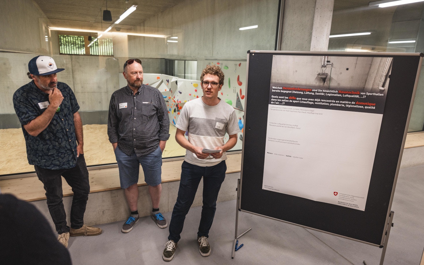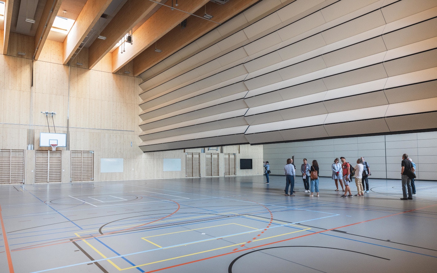 Cet événement était l’occasion, pour les architectes, de mettre en lumière les défis que représente un tel projet de construction doté d’un budget d’environ 24 millions de francs. Parmi ces problématiques, on peut citer les exigences accrues en matière de durabilité, ou encore la recherche de solutions pour mettre en place des cloisons, recherche qui a finalement abouti en Amérique du Nord. Deux cloisons mobiles ont été rapportées jusqu’à Macolin et permettent désormais de diviser la salle de sport en trois espaces et d’assurer une isolation acoustique entre eux. Des flipcharts électroniques, des écrans intégrés aux murs et des installations prévues pour la lumière et les caméras répondent à la demande, toujours plus forte, de modernité technique et de fusion de la théorie et de la pratique. La polyvalence de la construction, comprenant une salle de lutte et un mur d'escalade au sous-sol ainsi que des sols sportifs dans les salles de théorie, a suscité l’admiration lors de la visite ponctuée de divers postes informatifs.