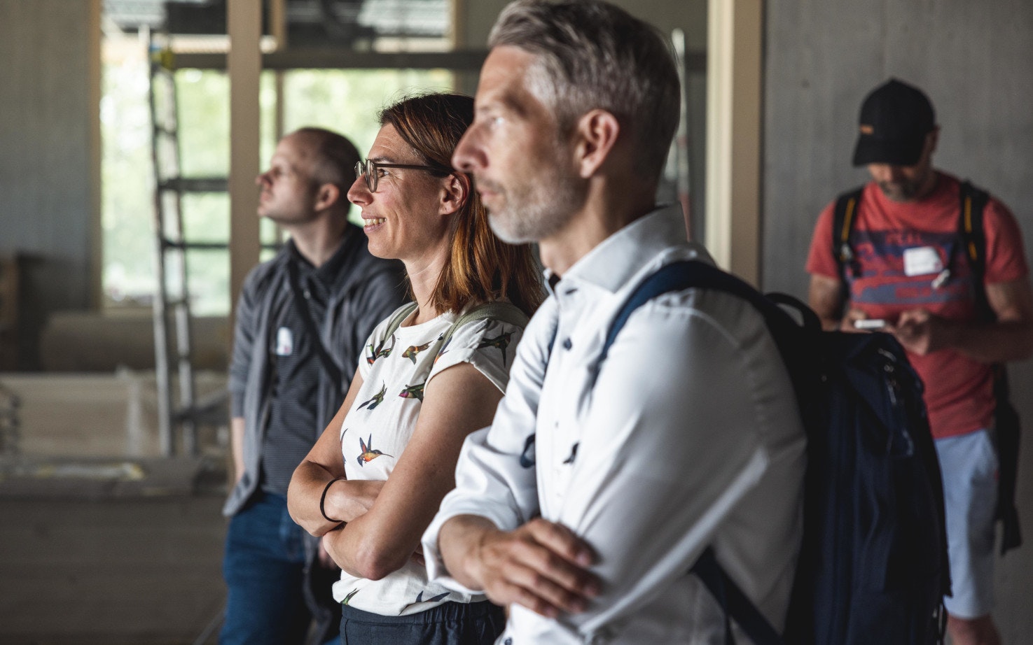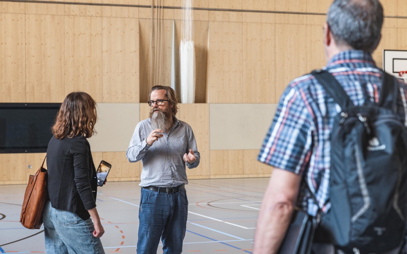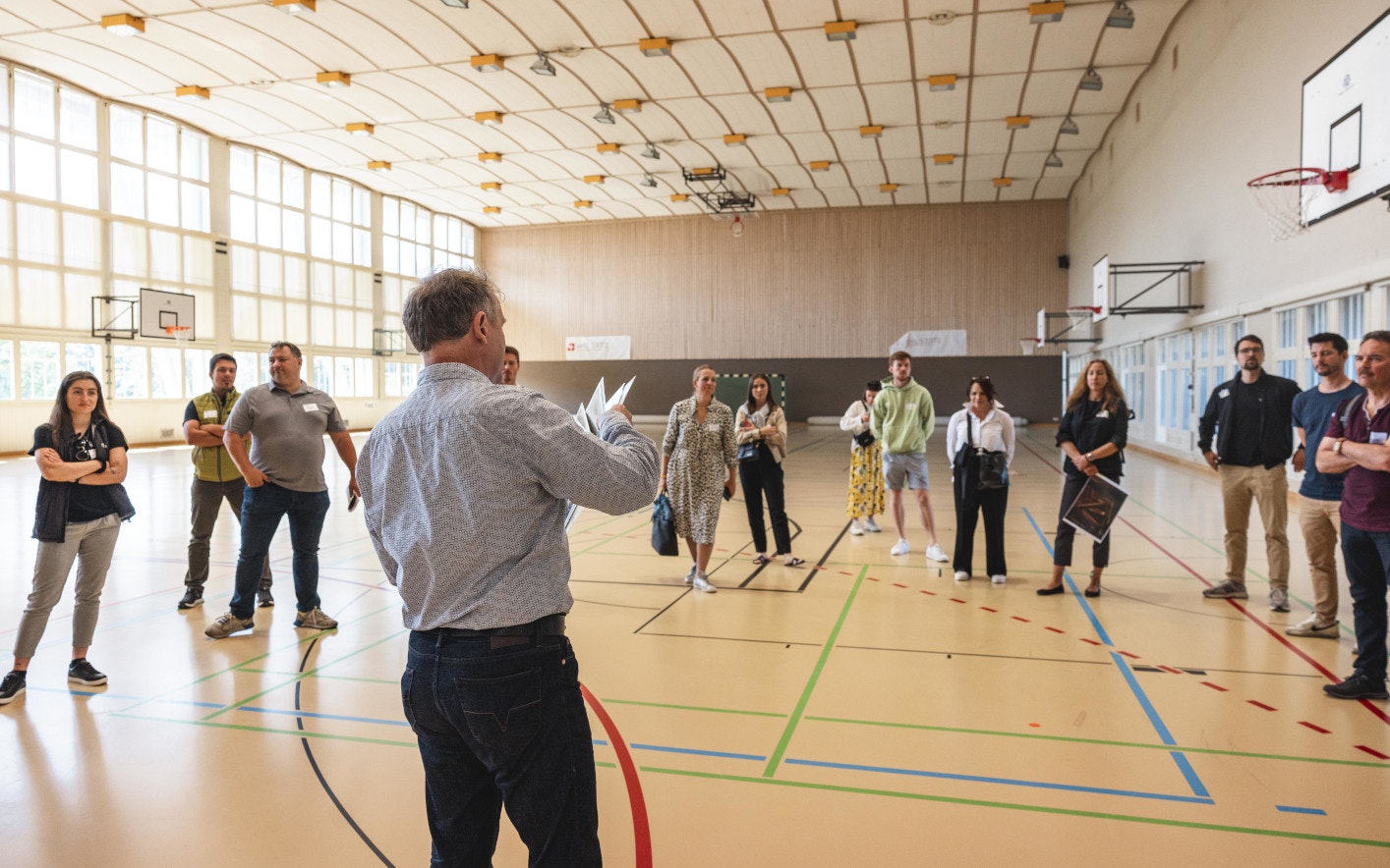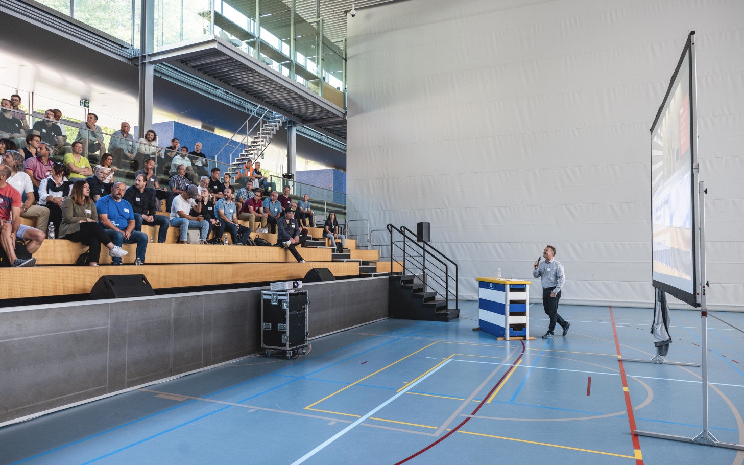 Cet événement était l’occasion, pour les architectes, de mettre en lumière les défis que représente un tel projet de construction doté d’un budget d’environ 24 millions de francs. Parmi ces problématiques, on peut citer les exigences accrues en matière de durabilité, ou encore la recherche de solutions pour mettre en place des cloisons, recherche qui a finalement abouti en Amérique du Nord. Deux cloisons mobiles ont été rapportées jusqu’à Macolin et permettent désormais de diviser la salle de sport en trois espaces et d’assurer une isolation acoustique entre eux. Des flipcharts électroniques, des écrans intégrés aux murs et des installations prévues pour la lumière et les caméras répondent à la demande, toujours plus forte, de modernité technique et de fusion de la théorie et de la pratique. La polyvalence de la construction, comprenant une salle de lutte et un mur d'escalade au sous-sol ainsi que des sols sportifs dans les salles de théorie, a suscité l’admiration lors de la visite ponctuée de divers postes informatifs.