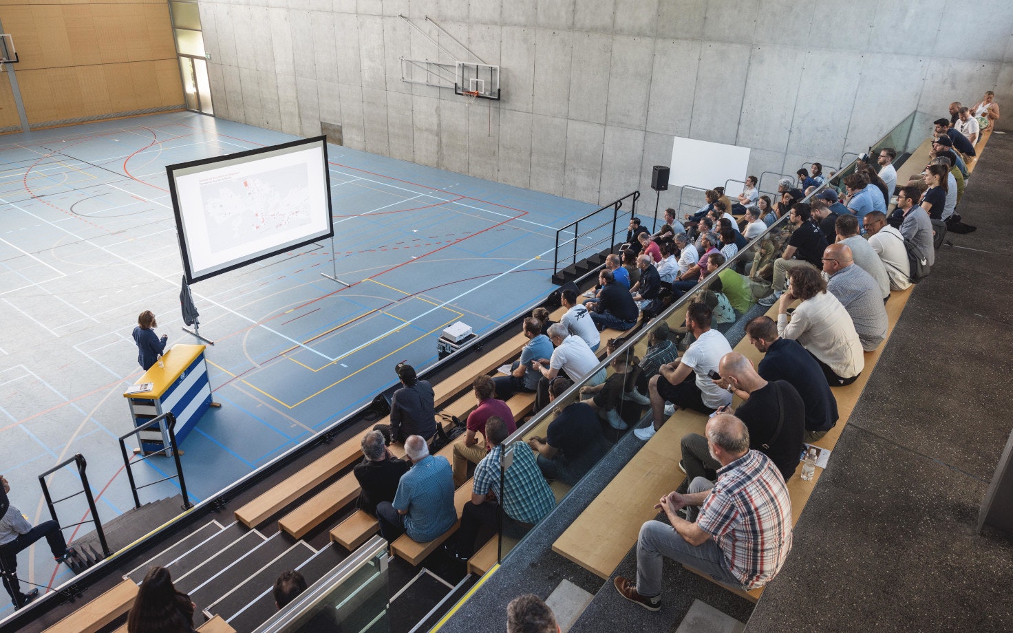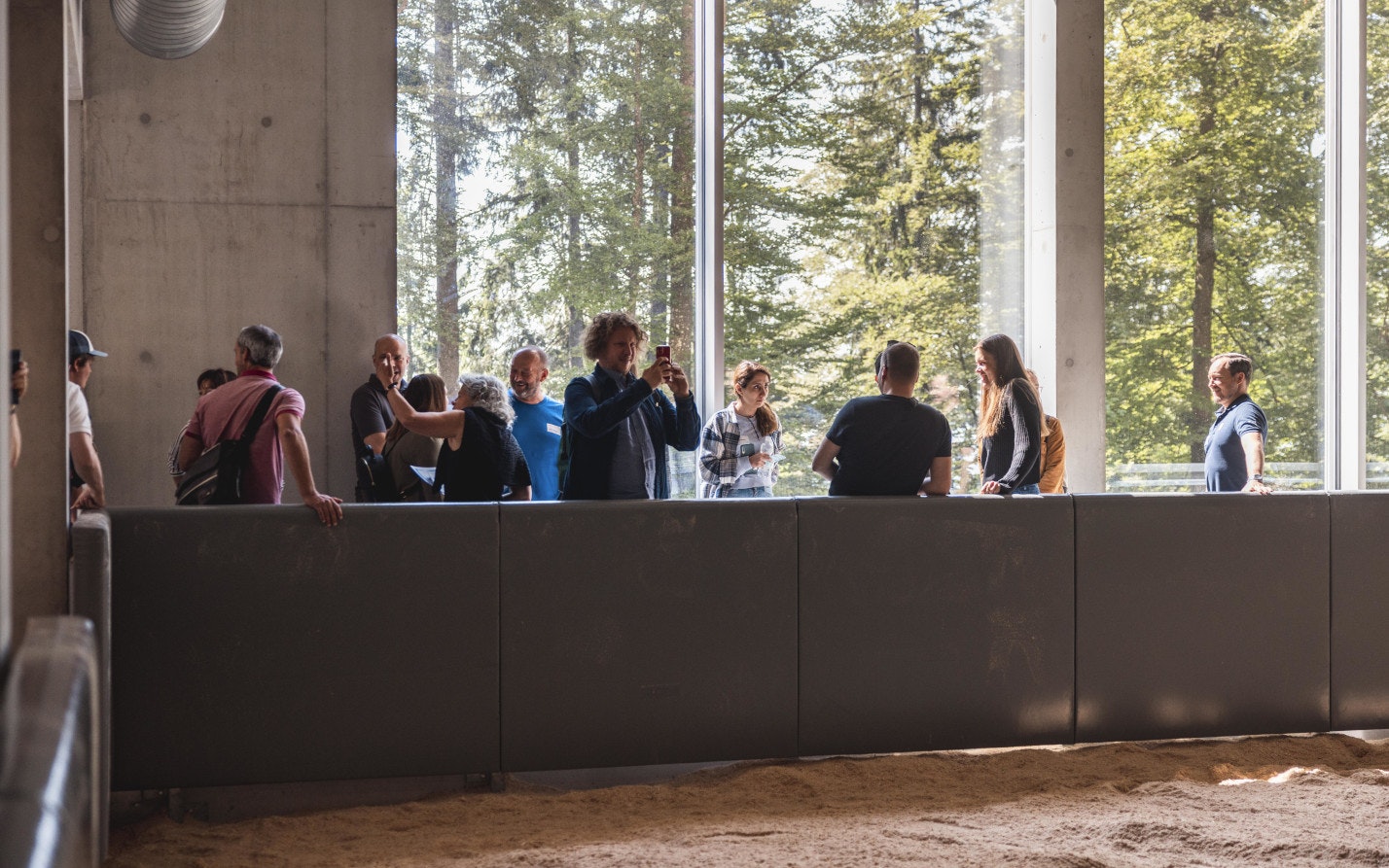 Les près de 100 personnes présentes à la visite – des représentants et représentantes de services fédéraux, cantonaux et communaux des constructions et des sports mais aussi de fédérations ainsi que des personnes intéressées par la construction d’installations sportives – ont pu bénéficier d’un aperçu des installations sportives de l’Office fédéral du sport lors d’une belle journée ensoleillée.