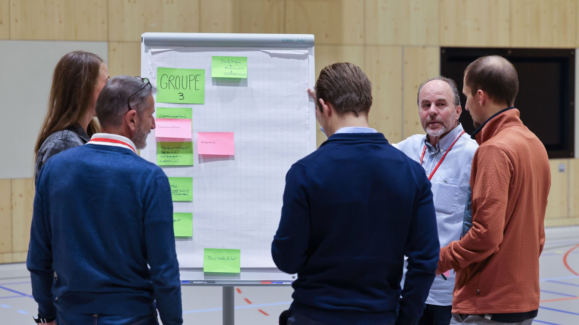 La matinée, entièrement repensée, a permis aux participants et participantes de s’impliquer d’emblée en identifiant différents enjeux et problèmes. Ces travaux préparatoires se sont déroulés sous la forme d’ateliers organisés conjointement par l’association Swiss Sport Managers, le réseau ThinkSport, l’Université de Berne, l’ASMAS et la HEFSM. L’après-midi, des exposés et des tables rondes ont permis de découvrir et de débattre de propositions de solutions innovantes.